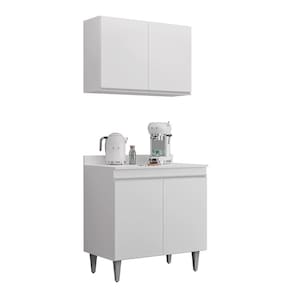 Kit Cozinha Balcão Ellen e Aéreo Isis 80cm C/ Tampo Branco - Vallisa Decor