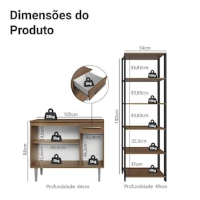 Com um design moderno e funcional, este móvel é ideal para armazenar utensílios, mantimentos e eletros de forma organizada.