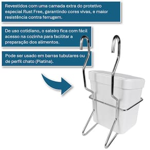 Esta barra é versátil e funcional, pois acompanha 6 ganchos, podendo então armazenar os utensílios (garfos, conchas e colheres que possuem furação no cabo) diretamente nos ganchos, bem como suporta outros itens desta linha, que encaixam facilmente na barra e auxiliam a compor um ambiente organizado e harmonioso.