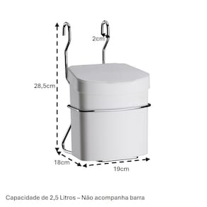 - Medidas lixeira: 18cm (C) x 19cm (L) x 18 (A) - Peso: 0,775Kg