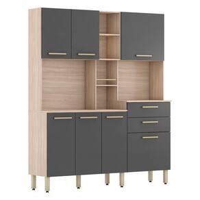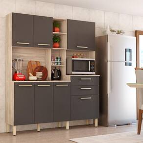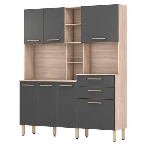 Essa cozinha é uma facilitadora na hora de organizar a sua cozinha. NAO necessita furar a parede, acompanha pés com regulagem de altura, possui uma estrutura totalmente em MDP de alta qualidade, aumentando a durabilidade, resistência e qualidade do produto. Possui 2 gavetas grandes com corrediças metálicas, diversas prateleiras internas, 7 portas com puxadores champanhe são modernos e resistentes, espaço para microondas nichos e um belíssimo porta temperos garantem o visual moderno e elegante.