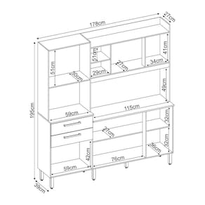 CaracterísticasEstrutura em MDP.Pintura em acabamento UV.06 Portas sendo uma delas com pistão a gás 02 Gavetas com corrediças MetálicasEspaço para forno ou para Micro-ondasPrateleiras com amplo espaçoPés Reguláveis *Acompanha Tampo OBJETOS DECORATIVOS NÃO ACOMPANHAM OS PRODUTOSLimpar o produto utilizando apenas pano umedecido com água, nunca utilizar produtos abrasivos ou esponjas de aço.Acompanha manual e todos os acessórios para montagem.Recomendamos que a montagem seja feita por um profissional qualificado.Garantia de 03 meses para eventuais defeitos de fabricação.DimensõesAltura: 195 cmLargura: 178 cmProfundidade 39 cmItens Inclusos01 Kit Cozinha Compacta Peso Total: 90 Kg 02 volumes.ATENÇÃO OBSERVAÇÕES IMPORTANTESAs imagens são meramente ilustrativas, não serão enviados objetos de decoração, eletrônicos e demais itens que não estejam especificados nos itens inclusos. É INDISPENSÁVEL que seja feita a conferência do produto no ato da entrega e caso haja alguma divergência, seja feito o contato imediato com a loja e notificação no canhoto. CONSTATANDO DEFEITO NO ATO DA ENTREGA O PRODUTO NÃO DEVERÁ SER MONTADO ATÉ TRATATIVA COM A LOJA. NÃO SERÁ EFETUADA A TROCA DO PRODUTO APÓS A MONTAGEM TER SIDO EFETUADA. A montagem é de total responsabilidade do cliente e defeito na montagem serão tratadas como assistências. OS PROCESSOS DE PENDÊNCIAS SERÃO TRATADOS MEDIANTE A FOTOS PARA ANALISE E CONFERÊNCIA DA INFORMAÇÃO. As cores do produto podem variar de acordo com o seu monitor, a iluminação do ambiente em que você está e até mesmo a sua percepção visual. Não nos responsabilizamos, no ato da entrega, por subir escadas e elevadores. Eventuais despesas são de responsabilidade do cliente. Dúvidas serão tratadas via protocolo.