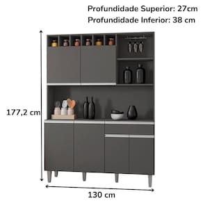 Kit Cozinha Alice, projetado para oferecer praticidade e elegância ao seu dia a dia. Produzido em MDP 12/15 mm (fundo 3 mm) com acabamento em pintura UV. Possui portas com dobradiças metálicas, gaveta com corrediças metálicas, nichos e adega superior, além de suporte porta-taças metálico. Conta com pés plásticos com regulagem e puxadores em alumínio, que complementam o design moderno. Produto entregue em 02 volumes.