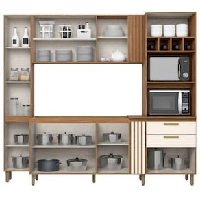 Apresentamos esse maravilhoso Kit Cozinha Compacta fabricada pela Briz com um design contemporâneo e funcional. É a escolha perfeita para deixar sua cozinha mais sofisticada.. Fabricada com materiais de altíssima qualidade em MDP/MDF garantindo durabilidade e resistência, possui dez portas, sete prateleiras reforçadas amplo espaço para organizar seus utensílios domésticos. Espaço para acomodar dois eletrodomésticos, quatro nichos adega para exibir suas bebidas favoritas. Suas gavetas equipadas com corrediças telescópicas facilitando o acesso ao seu interior. Adicione praticidade e estilo para seu ambiente! Confira e garanta já o seu!