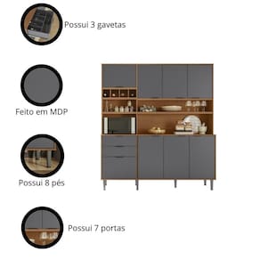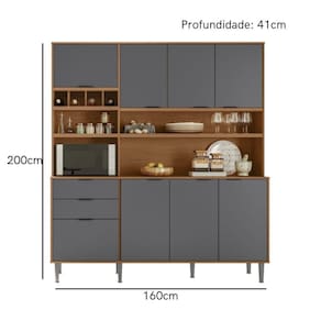 8 portas com prateleiras internas, ideais para utensílios, louças e mantimentos