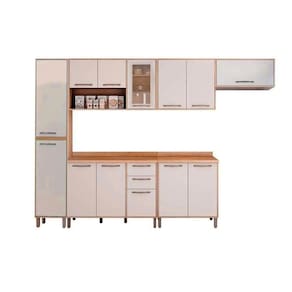 Cozinha Completa Áustria 6 Peças (1 Paneleiro + 3 Armários + 2 Balcões) C6P31 Cinamomo/Off White - Valdemóveis Abaixo segue os produtos que compoem o KIT: - Paneleiro de Cozinha Áustria c/ 2 Portas 45cm Cinamomo/Off White - Valdemóveis - 1 unidades Dimensões: Alt: 226,0cm x Larg70,0cm x Comp/Profund:70,0cm