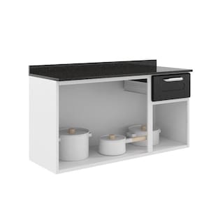 - Acabamento do tampo: MDF laminado Granito preto