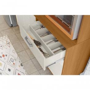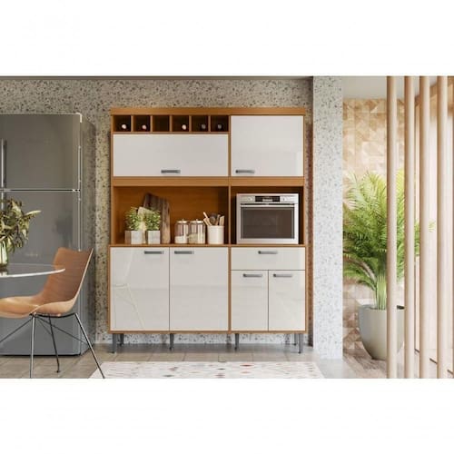 A combinação entre o Jequitiba e o Off White traz harmonia e sofisticação para sua cozinha, com excelente capacidade de armazenamento.