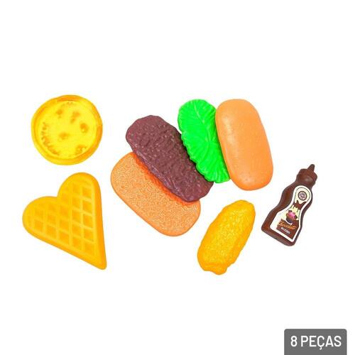 KIT Cozinha de Plástico 08 Peças Hora do La - Kit Cozinha Fast Food Hora do Lanche, fabricado em plástico de alta qualidade, brinquedo em cartela;\nEspecificações:\nMarca : ARK BRASIL\nTipo de material : Plástico\nCores ou Estampa : Colorido\nDimensões do Produto : 22,5 X 23,5 X 2,5 CM\nDimensões da Embalagem : 22,5 X 23,5 X 2,5 CM\nPeso Bruto (Gramas) : 0.080 Marca: Não Informado