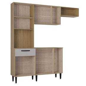 Kit Cozinha Dora Com Balcão Damasco Ripado Off White - Poquema