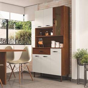 Kit Cozinha Golden 6 Portas Nogueira Off White Ripado - Kits Paraná