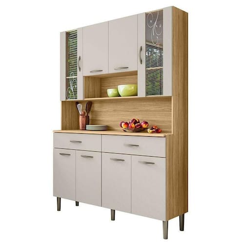Está montando sua cozinha? Apresentamos para você este belo kit cozinha da linha Golden. Oferecendo oito portas, sendo duas com vidro temperado serigrafado adicionando sofisticação. Contando com duas gavetas espaçosas para você poder guardar seus acessórios. Além disso, possui dois nichos amplos, ganhando mais espaço para acomodar seus itens e eletrodomésticos. Apresentando pés em poliestireno mais durabilidade e estabilidade. Fabricado pela Kits Paraná desenvolvido em MDP de madeira vindo do reflorestamento. É perfeito para quem procurar otimizar o espaço da sua cozinha com estilo e praticidade, atendendo às suas necessidades diárias. Confira e aproveite!