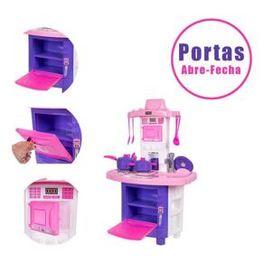 A Cozinha De Brinquedo Completa possui uma pia que sai água de verdade, basta montar a torneira e conectar o tubo de silicone corretamente. Além disso, os botões do fogão fazem barulho e o forno e o microondas abrem as portas, proporcionando uma experiência ainda mais interativa.