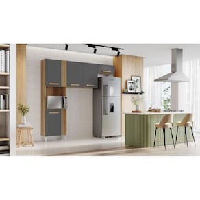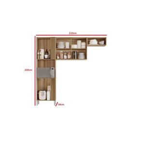 Altura: 200 cm Largura: 210 cm Profundidade: 36 cm Peso: 54 KgCaracterísticas e Especificações Técnicas: Ambiente: Cozinha Tipo de Produto: Cozinha Compacta Material: MDP 12/15mm Acabamento: Pintura UV Quantidade de Portas: 5 Quantidade de Gavetas: 0 Dobradiças: Metálicas Peso Suportado: 42 Kg""