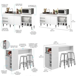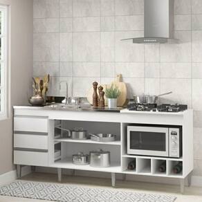 Kit Cozinha Kitnet Balcão Multiuso Bancada Mdp Menu Móveis Branco O Kit Cozinha Compacta sao moveis uteis e versateis perfeitos para completar o seu ambiente. Dispoe de um design atual que facilita na hora de montar a decoracao, proporcionando um espaco mais organizado e sofisticado. Produzido com materiais de excelente qualidade, garantindo a durabilidade e vida util do movel. O melhor em moveis no design atual aliando conforto, qualidade e otimos precos! Caracteristicas da Bancada: Produzido em MDP de 15 mm Acabamento em UV Porta com Dobradica Metalica Puxador em Perfil em ABS Adega para 4 Garrafas Nicho