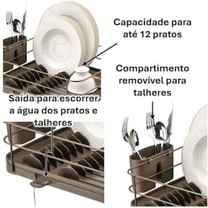01 - Escorredor de louças Para 12 pratos, Talheres e Copos 1109CF