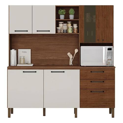Kit Cozinha Mega com Tampo Nogueira Off White Ripado - Kits Paraná
