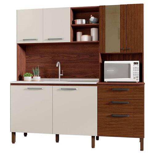 Kit Cozinha Mega Nogueira Off White Ripado - Kits Paraná