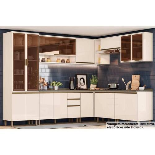 - Cristaleira de Cozinha Connect c/ 4 Portas (2 c/ Vidro) 71x51x220cm Off White - Henn - 1 unidades Dimensões: Alt: 52cm x Larg221cm x Comp/Profund:221cm