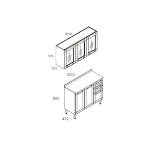 Dimensões(Cm): Comprimento(Profundidade): 43cm x Largura: 105cm x Altura: 85cm