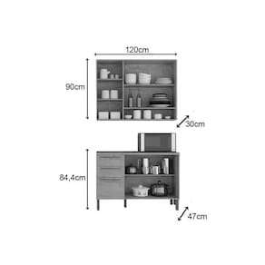 Cozinha Completa Nápoli 2 Peças (1Aéreo+1Balcão) C2P04 Amendoa/Off White - Ronipa Abaixo segue os produtos do KIT: Cozinha Completa Nápoli 2 Peças (1Aéreo+1Balcão) C2P04 Amendoa/Off White - Ronipa Balcão de Cozinha c/ Tampo Nápoli c/ 3 Portas e 2 Gavetas 120cm Amendoa/Off White - Ronipa