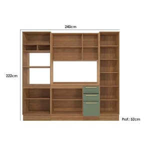 Cozinha Completa Botanic 5 Peças (1Aéreo+1Balcão+2Paneleiros+1Complemento) M650 Nogueira/Verde Oliva - Kappesberg