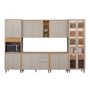 Cozinha Completa Allure 6 Peças (2Aéreos+2Balcões+1Cristaleira+1Paneleiro) CP06 Jequitiba/Gris Fosco - Linea Abaixo segue os produtos que compoem o KIT: - Paneleiro de Cozinha Allure Forno 4 Ptas 1 Basc Ripada 70cm Jequitiba/Gris Fosco - Linea - 1 unidades Dimensões: Alt: 230cm x Larg70cm x Comp/Profund:70cm