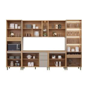 Kit Cozinha Modulada 6 Peças Allure (2Aéreos+2Balcões+1Cristaleira+1Paneleiro) CP16 Jequitiba/Gris Fosco - Linea Brasil - Blush