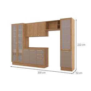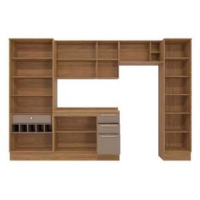 Cozinha Completa Botanic 6 Peças (2Aéreos+1Balcão+1Cristaleira+1Paneleiro+1Complemento) M661 Nogueira/Fendi - Kappesberg