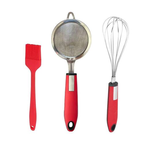 Kit Cozinha - Pincel de Silicone Peneira em Inox e Batedor Vermelho Kit de Utensílios para Cozinha - Pincel de Silicone, Peneira de Aço Inox e Batedor Fouet Aplicação: Perfeito para quem busca praticidade e funcionalidade na cozinha, esse kit reúne três utensílios essenciais para o preparo de receitas doces e salgadas. Ideal para uso doméstico ou . Itens Inclusos: 1 pincel de silicone resistente ao calor, ideal para untar formas ou pincelar molhos e temperos; 1 peneira com malha fina em aço inox, ideal para peneirar farinhas, açúcar ou coar líquidos; 1 batedor fouet com arame de aço inox, excelente para misturar massas leves, ovos e molhos. Dicas de Uso: Utilize o pincel de silicone para aplicar ou calda em massas com facilidade. A peneira é perfeita para evitar grumos em suas receitas. O fouet proporciona misturas homogêneas com rapidez e leveza. Cuidados e Manutenção: Lave os utensílios com água e sabão neutro após o uso. Evite esponjas abrasivas. Todos os itens são fáceis de limpar e podem ser pendurados para melhor organização. Marca: Não Informado Ean: 7909463715021