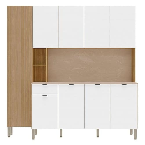 Apresentamos para você este belo kit cozinha da linha Pulse, possui nove portas oferecendo amplo espaço para acomodar seus itens, além de uma gaveta equipada com corrediças telescópicas, garantindo uma abertura suave facilitando na organização dos utensílios. Os pés em plástico resistente proporcionam mais estabilidade, permitindo ajustar a diferentes tipos de piso, fabricado pela Kits Paraná, é desenvolvido em MDP combinando resistência e durabilidade. Confira e aproveite!