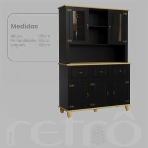 Kit Cozinha Retrô 5 Portas 3 Gavetas - Preto/Marfim