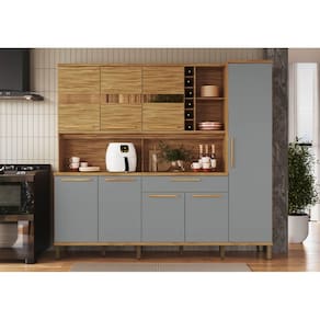 Possui gaveta com divisão e corrediça telescopica, prateliras, espoço para microondas, adega, puxador em MDF e pés em ABS com regulagem.