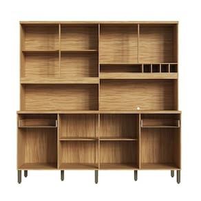 Possui gaveta com corrediça telescopica, prateliras, espoço para microondas, adega, puxador em ABS e pés em ABS com regulagem.