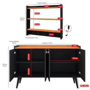 O Buffet Kiev conta com 2 prateleiras internas, 4 portas e um amplo tampo, perfeitos para organizar itens de cozinha e montar seu cantinho do café.