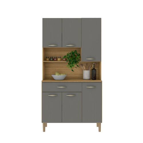 Kit Cozinha Sammy com 6 Portas e 1 Gaveta - Freijó/Gris