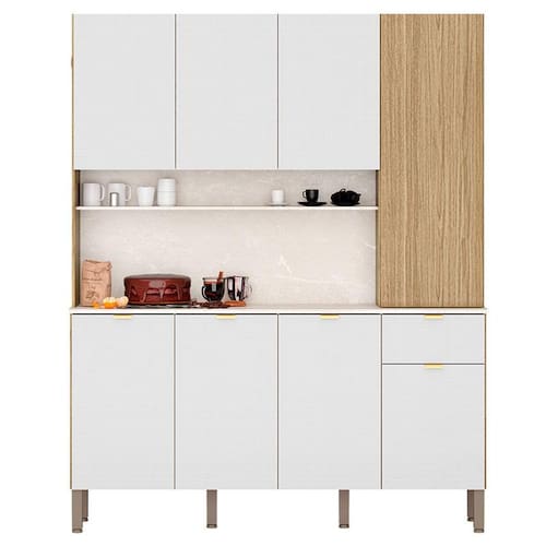 Está procurando móveis para sua cozinha? Apresentamos para você este belo kit cozinha da linha Slow. Com oito portas bem distribuídas, você terá bastante espaço para organizar seus itens. A gaveta vem equipada com corrediças telescópicas, proporcionando uma abertura suave e completa. Além disso, conta com dois nichos permitindo espaço extra para colocar seus eletrodomésticos e acessórios. Os pés reguláveis em plástico resistente garante ajuste perfeito ao piso trazendo mais estabilidade. Fabricado pela Kits Paraná, é desenvolvido em MDP de alta qualidade, garantindo durabilidade e resistência. Sendo perfeito para quem procura móveis que otimizem o espaço com elegância e praticidade. Confira e aproveite!
