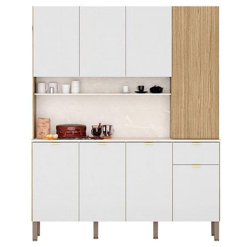 Está procurando móveis para sua cozinha? Apresentamos para você este belo kit cozinha da linha Slow. Com oito portas bem distribuídas, você terá bastante espaço para organizar seus itens. A gaveta vem equipada com corrediças telescópicas, proporcionando uma abertura suave e completa. Além disso, conta com dois nichos permitindo espaço extra para colocar seus eletrodomésticos e acessórios. Os pés reguláveis em plástico resistente garante ajuste perfeito ao piso trazendo mais estabilidade. Fabricado pela Kits Paraná, é desenvolvido em MDP de alta qualidade, garantindo durabilidade e resistência. Sendo perfeito para quem procura móveis que otimizem o espaço com elegância e praticidade. Confira e aproveite!