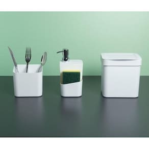 O Dispenser Trium é ideal na composição da sua cozinha. Comporta Detergente e esponja, deixando prático a hora de lavar a louça. É perfeito para deixar o ambiente limpo, bonito e organizado.