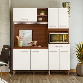 Se você tem um projeto para criar um novo ambiente, o Kit Cozinha Yara, é uma bela opção, por permitir diversas combinações decorativas com outras cores e móveis de diferentes designs, com um excelente acabamento e estrutura em MDP de alta qualidade.Na parte superior desse kit você encontra um armário com porta basculante sendo sustentada na abertura e no fechamento por um pistão a gás, garantindo maior conforto no manuseio. Ao lado o Kit Yara contém um nicho com uma prateleira para que você use tanto para os seus temperos, molhos ou até mesmo objetos decorativos, aí vai da sua criatividade. As 2 portas superiores contam com 1 prateleira interna. Tem também um belo espaço para o seu micro-ondas, 1 gaveta e abaixo disso mais 2 portas com amplo espaço e prateleira interna. Precisa de um balcão para seus utensílios? O Kit Yara da Nicioli tem e abaixo dele mais 2 portas (sim, mais espaço!) com 1 prateleira interna.Informações do Produto:Material: Fabricado em MDPNúmero de Portas: 7;Número de Gavetas: 1;Cores Principais: Avelã e Off White Cristal;Corrediças: Metálicas;Pistão Abertura: A gás;Marca: Nicioli; Dimensões do Produto Montado:Altura: 190 cm;Largura: 160 cm;Comprimento: 43 cm; ATENÇÃO: Verifique se as dimensões dos produtos passam por elevadores, portas, escadas e corredores. Não nos responsabilizamos pelo transporte dos produtos por escadas, guinchos, içamento ou quaisquer outros meios específicos de transporte. - As imagens ambientadas são meramente ilustrativas e podem apresentar itens que não compõe o produto. - As cores do produto podem variar de acordo com o monitor, a iluminação do ambiente ou sua percepção visual. - Verifique se o local de entrega está apto a receber o produto com as dimensões informadas. - Para evitar imprevistos na sua entrega, confira as dimensões do produto no momento.- Não nos responsabilizamos pela montagem do produto.