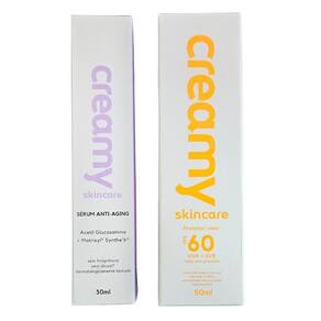 Kit Creamy Drops Serúm Anti-Aging 30ml+Protetor Solar FPS 60 CREAMY Não se trata apenas de mais uma marca de skincare, e sim de uma trajetória de amor próprio e autocuidado. Trazem dermocosméticos tecnológicos e inovadores, com ingredientes inéditos no Brasil, para uma rotina de skincare personalizada, feita especialmente para você. Com produtos cruelty-free e vegan-friendly, que apoiam a reciclagem de embalagem em todo o seu processo de produção. Faz bem para a sua pele, faz bem para o meio ambienteAqui cuidamos com excelência do que temos de melhor: nossa autoestima Para nós cuidar de você não é custo, é investimento Esperamos sua compra e seja bem-vindo ao nosso universo da beleza Marca: Creamy Ean: 7799244419862