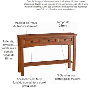 Dimensões do Aparador 3 Gavetas 100% Madeira: