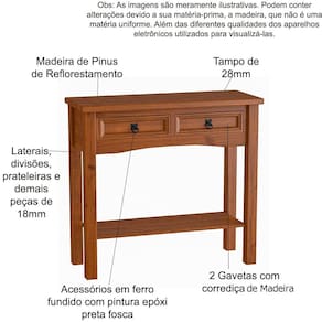 Dimensões do Aparador 2 Gavetas 100% Madeira:
