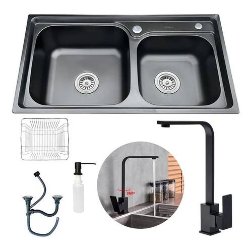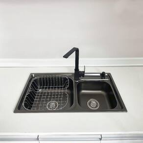 Cuba cozinha gourmet pia dupla preta acessorios + torneira perfil em l slim luxo preta brinovar Cuba dupla preta cozinha gourmet Especificações técnicas Marca: brinovar Cor: preto Acabamento: acetinado Modelo: dupla Material: aço inoxidável 201 Espessura: 3mm Indicação: cozinha, espaços gourmet, ilhas e churrasqueiras Aplicação: embutir ou sobrepor Medidas total da cuba: 78 c x 43 l x 20 a cm Capacidade total: 39 litros Medidas internas cuba grande: 37 c x 36 l x 18 a cm Capacidade: 24 litros Medidas internas cuba pequena: 30 c x 30 l x 16,5 a cm Capacidade: 15 litros Diâmetro furo para torneira: 35mm lado esquerdo Diâmetro furo para dispenser: 28mm lado direito Posição da válvula: centralizada Furo para válvula de 4 1 2 '' Válvula escape - ladrão: sim Anti-ruído: sim fundo Aceita triturador: sim Acompanha acessórios: sim Sifão: sim : 90 dias Torneira perfil em l slim luxo preta brinovar Especificações técnicas: Marca: brinovar Material: cobre fino - aço inox 304 Cor: preto Acabamento: fosco Modelo: slim em l Indicação: cozinha - espaços gourmet - ilhas - churrasqueiras Instalação: bancada - pia - cuba Sistema: monocomando Bica: giratória 360 graus Arejador: sim Jato de água: aerado Altura: 34 cm Largura: 5 cm Comprimento total: 22 cm Cartucho: cartucho cerâmico de alta durabilidade 500.000 ciclos Temperatura mínima da água: 5celcius Temperatura máxima da água: 70celcius Utilização com água fria: sim, necessário a utilização de adaptador 't' não incluso Aquecedor compatível com a torneira: elétrico, solar e gás não incluso Pressão mínima da água: 3mca metros de coluna dágua Pressão máxima da água: 40mca metros de coluna dágua Pressão ideal da água: acima de 5mca metros de coluna dágua Perfuração da bancada: 3,5 cm Rosca: 3 cm : 90 dias Cuidados: Não use palha de aço, produtos químicos, não usar ácido muriático, água sanitária ou qualquer outro solvente para a limpeza. Limpe periodicamente o seu produto apenas com um pano macio, água e sabão neutro. Para manter o brilho do seu produto recomendamos o uso da pasta para polir e remover manchas em superfícies de aço inoxidável. Itens inclusos: Torneira monocomando Mangueira flexível de aço trançado 50cm para ligação de água quente e fria Sistema de fixação Anéis de vedação Cuba projetada para aplicação sobreposta ou embutida. Dosador de sabão de 300ml com sistema recarrega fácil. Não é necessário retirar o reservatório para reabastecê-lo. Cesto escorredor Válvula 4 1 2 totalmente compatíveis com o uso de trituradores elétricos . Válvula e tubulação do ladrão Sifão Marca: Não Informado