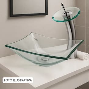 Kit Cuba de Vidro para Banheiro com Torneira Monocomando e Válvula