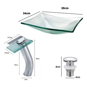 Kit Cuba de Vidro para Banheiro com Torneira Monocomando e Válvula