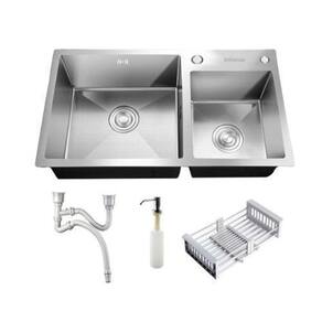 Especificações técnicas Marca: brinovar Material: aço inoxidável 201 Cor: prata Acabamento: escovado acetinado Modelo: cuba dupla Formato: retangular Medidas internas cuba grande: 38 c x 39 l x 20 a cm Capacidade: 30 litros Medidas internas cuba pequena: 33 c x 31 l x 20 a cm Capacidade: 20 litros Medidas total da cuba: 78 c x 43 l x 20 a cm Capacidade total: 50 litros Espessura: 3mm Indicação: cozinha, espaços gourmet, ilhas e churrasqueiras Aplicação: embutir ou sobrepor Diâmetro furo para torneira: 35mm lado esquerdo Diâmetro furo para dispenser: 28mm lado direito Furo para válvula: 4 1 2 '' Posição da válvula: centralizada Aceita triturador: sim Acompanha acessórios: sim Válvula escape - ladrão: sim Capacidade do dispenser detergente: 300ml Escorredor extensível: medida aberto 45x21,5cm e medida fechado 28x21,5cm Sifão: sim Anti-ruído: sim, pintura externa e aplicação da manta no fundo e laterais Garantia: 90 dias