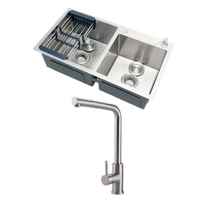 Medidas internas cuba grande: 37 cm X 38 cm X 23 cm Medidas internas cuba pequena: 33,5 cm X 33,5 cm X 23 cm Furo da torneira: 3,5 cm Posição da Válvula: Centralizada Furação da Válvula: 4.1/2' Válvula Escape/Ladrão: Não Aceita Triturador: Sim Anti-Ruído: Sim Sifão: Sim Fixação: Silicone acético (não incluso)