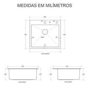 Especificações técnicas Marca: brinovar Material: aço inoxidável 201 Cor: dourado Acabamento: escovado acetinado Modelo: 60x45cm Formato: retangular Medidas total da cuba: 60 c x 45 l x 21,5 a cm Medida interna da cuba: 55 c x 35 l x 21 a cm Espessura: 3mm Capacidade total: 40 litros Indicação: cozinha, espaços gourmet, ilhas e churrasqueiras Aplicação: embutir ou sobrepor Diâmetro furo para torneira: 35mm posição central Diâmetro furo para dispenser: 28mm lado direito Furo para válvula: 4 1 2 Posição da válvula: centralizada Aceita triturador: sim Acompanha acessórios: sim Válvula escape/ladrão: sim Capacidade do dispenser detergente: 300ml Escorredor extensível: medida aberto 45x21,5 e medida fechado 28x21,5cm Sifão: sim Anti-ruído: sim, pintura externa e aplicação da manta no fundo e laterais Garantia: 90 dias