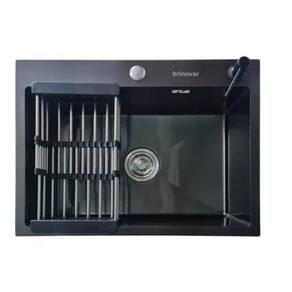 Especificações técnicas Marca: brinovar Material: aço inoxidável 304 Cor: preto Acabamento: escovado acetinado Modelo: 60x45cm Formato: retangular Medidas total da cuba: 60 c x 45 l x 21,5 a cm Medida interna da cuba: 55 c x 35 l x 21 a cm Espessura: 3mm Capacidade total: 40 litros Indicação: cozinha, espaços gourmet, ilhas e churrasqueiras Aplicação: embutir ou sobrepor Diâmetro furo para torneira: 35mm posição central Diâmetro furo para dispenser: 28mm lado direito Furo para válvula: 4 1 2 '' Posição da válvula: centralizada Aceita triturador: sim Acompanha acessórios: sim Válvula escape - ladrão: sim Capacidade do dispenser detergente: 300ml Escorredor extensível: medida aberto 45x21,5 e medida fechado 28x21,5cm Sifão: sim Anti-ruído: sim, pintura externa e aplicação da manta no fundo e laterais Garantia: 90 dias